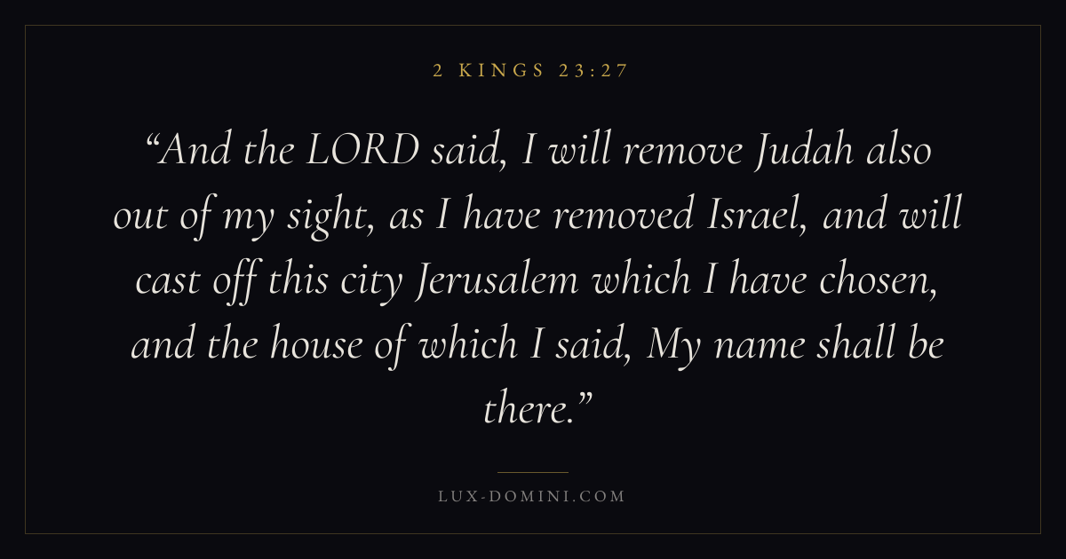 And the LORD said, I will remove Judah also out of my sight, as I have removed Israel, and will cast off this city Jerusalem which I have chosen, and the house of which I said, My name shall be there.