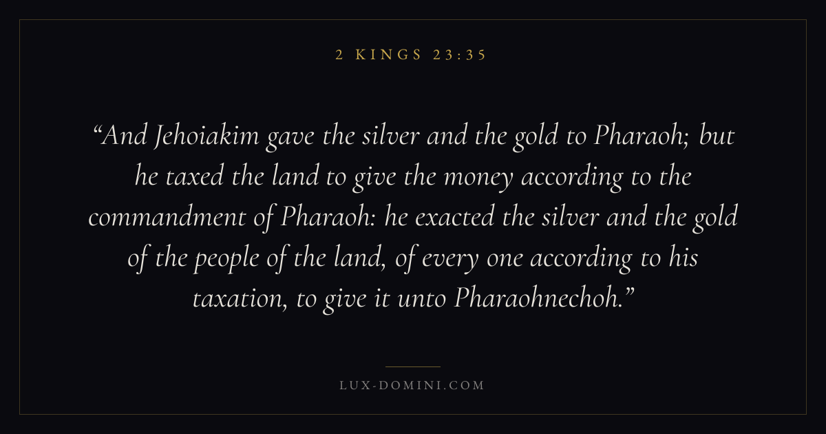 And Jehoiakim gave the silver and the gold to Pharaoh; but he taxed the land to give the money according to the commandment of Pharaoh: he exacted the silver and the gold of the people of the land, of every one according to his taxation, to give it unto Pharaohnechoh.