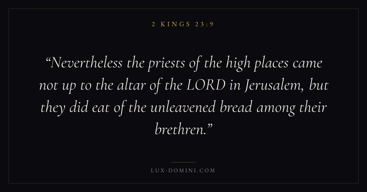 Nevertheless the priests of the high places came not up to the altar of the LORD in Jerusalem, but they did eat of the unleavened bread among their brethren.