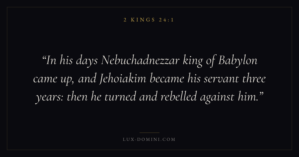 In his days Nebuchadnezzar king of Babylon came up, and Jehoiakim became his servant three years: then he turned and rebelled against him.