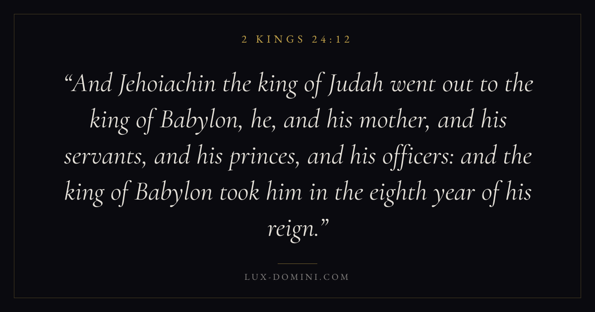 And Jehoiachin the king of Judah went out to the king of Babylon, he, and his mother, and his servants, and his princes, and his officers: and the king of Babylon took him in the eighth year of his reign.