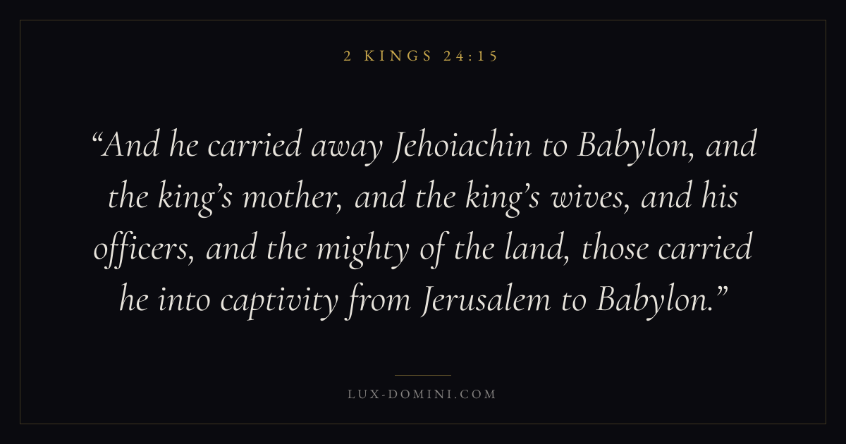 And he carried away Jehoiachin to Babylon, and the king’s mother, and the king’s wives, and his officers, and the mighty of the land, those carried he into captivity from Jerusalem to Babylon.