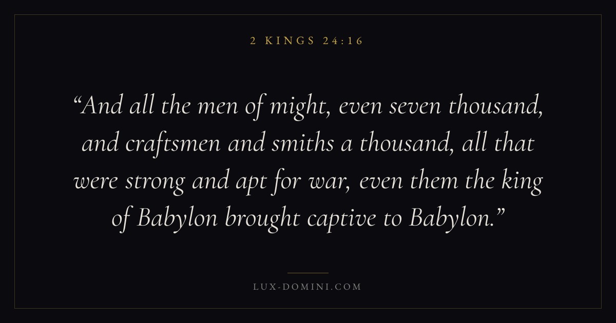 And all the men of might, even seven thousand, and craftsmen and smiths a thousand, all that were strong and apt for war, even them the king of Babylon brought captive to Babylon.