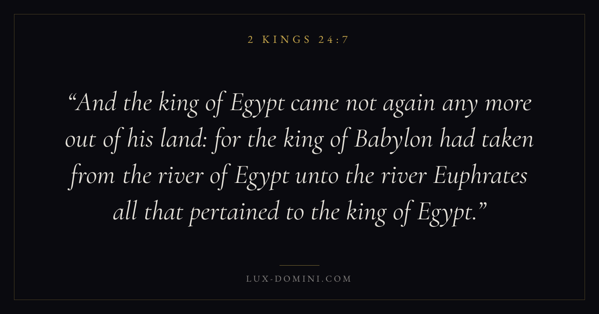 And the king of Egypt came not again any more out of his land: for the king of Babylon had taken from the river of Egypt unto the river Euphrates all that pertained to the king of Egypt.