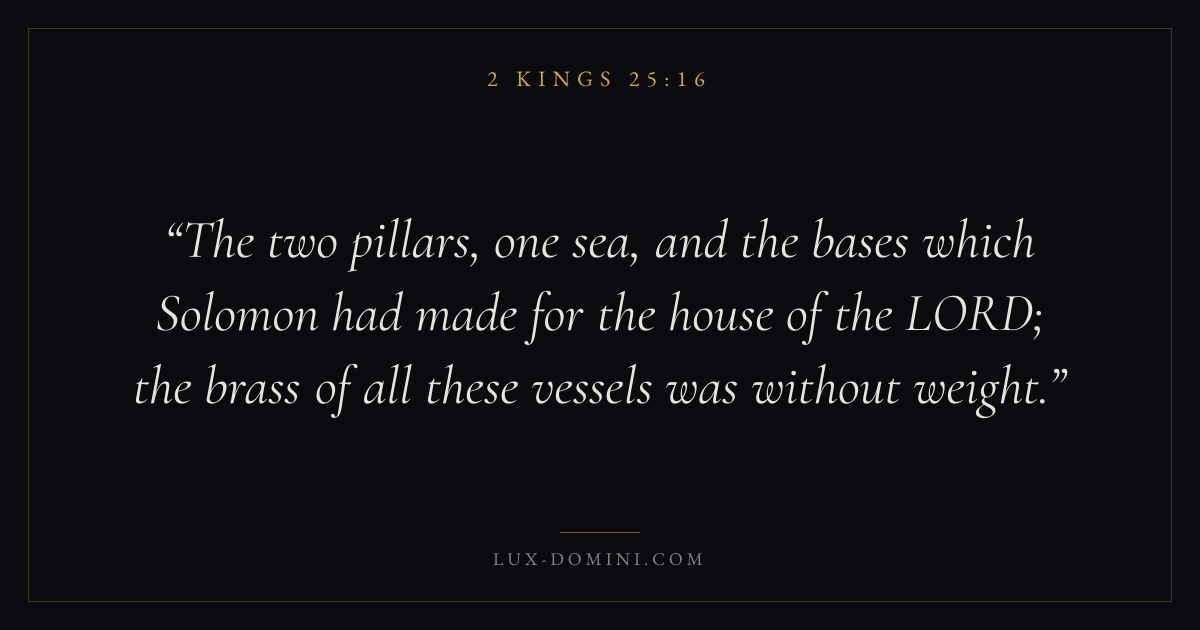 The two pillars, one sea, and the bases which Solomon had made for the house of the LORD; the brass of all these vessels was without weight.