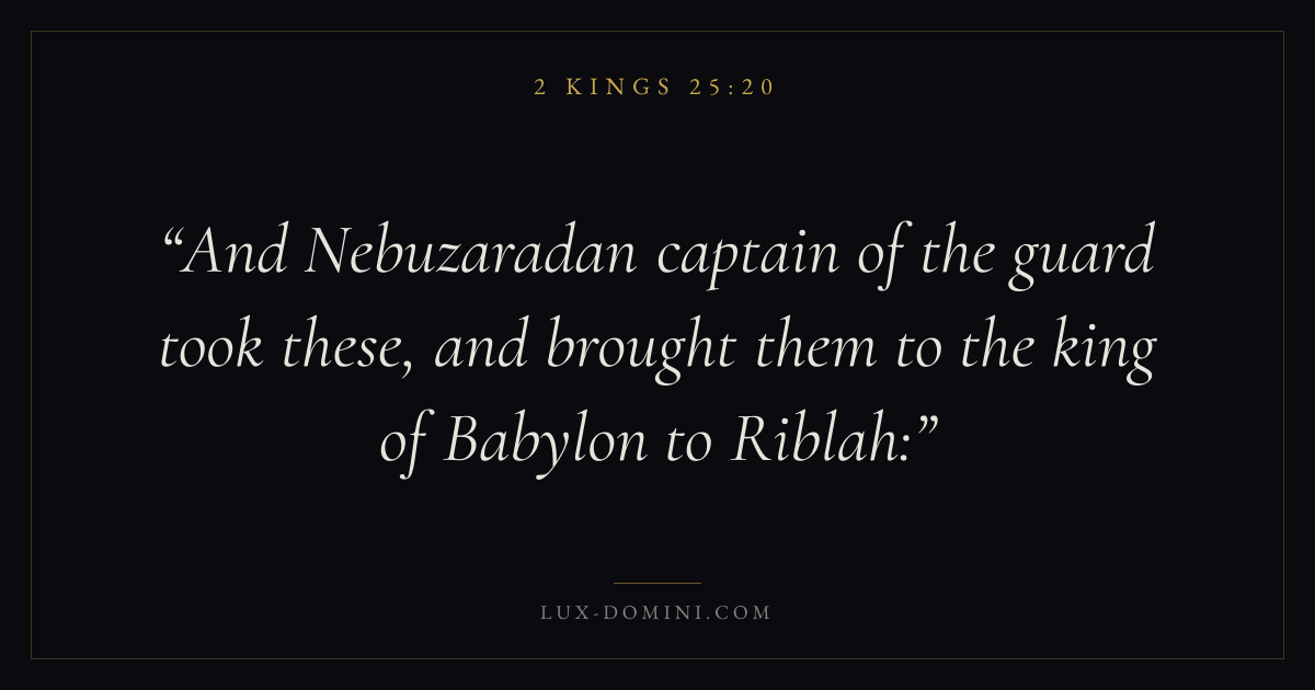 And Nebuzaradan captain of the guard took these, and brought them to the king of Babylon to Riblah: