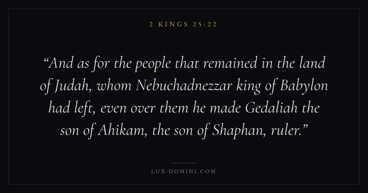 And as for the people that remained in the land of Judah, whom Nebuchadnezzar king of Babylon had left, even over them he made Gedaliah the son of Ahikam, the son of Shaphan, ruler.