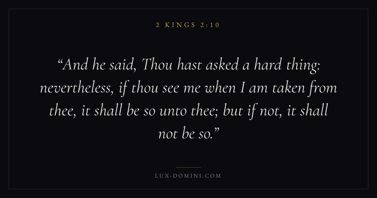 And he said, Thou hast asked a hard thing: nevertheless, if thou see me when I am taken from thee, it shall be so unto thee; but if not, it shall not be so.