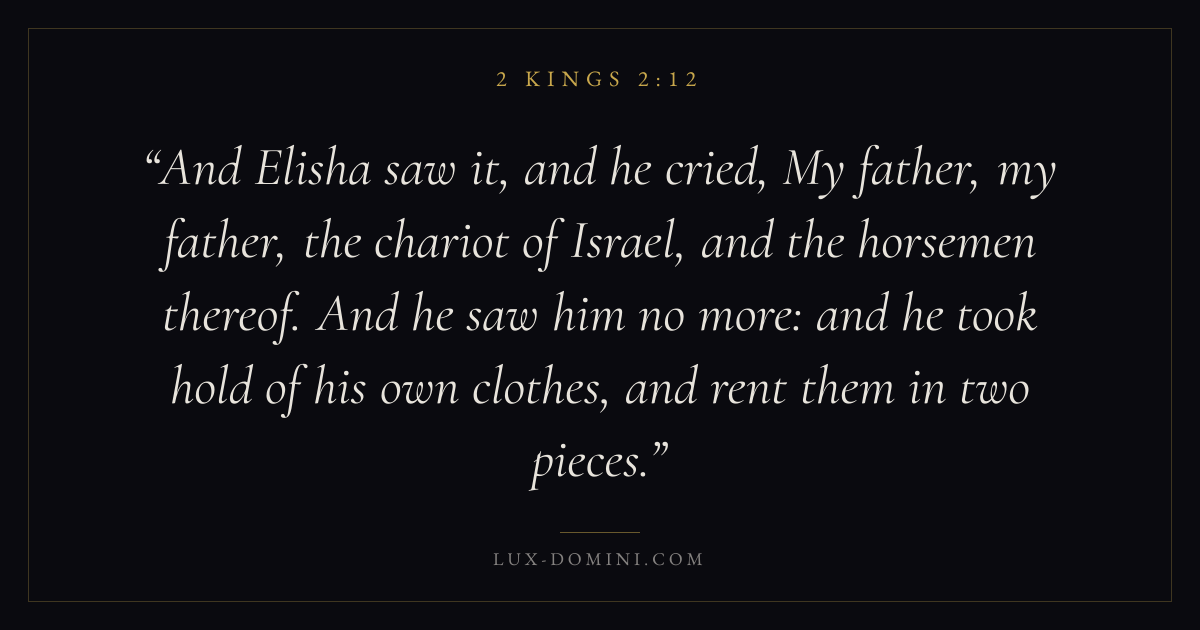 And Elisha saw it, and he cried, My father, my father, the chariot of Israel, and the horsemen thereof. And he saw him no more: and he took hold of his own clothes, and rent them in two pieces.