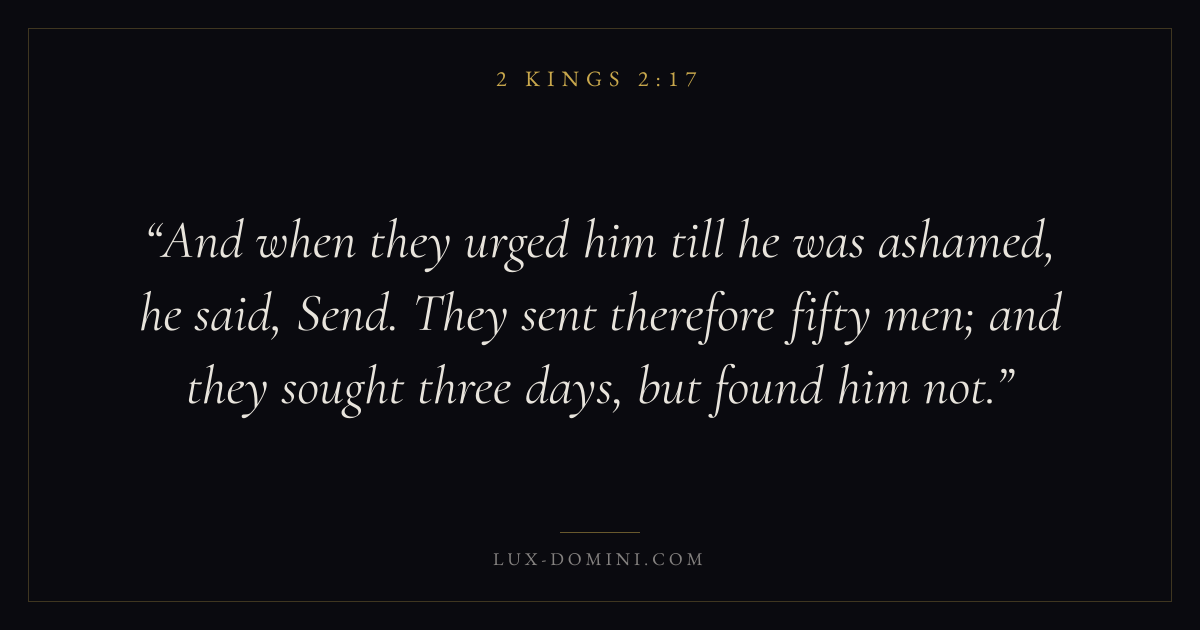 And when they urged him till he was ashamed, he said, Send. They sent therefore fifty men; and they sought three days, but found him not.