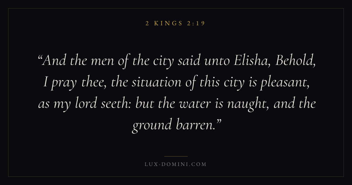 And the men of the city said unto Elisha, Behold, I pray thee, the situation of this city is pleasant, as my lord seeth: but the water is naught, and the ground barren.