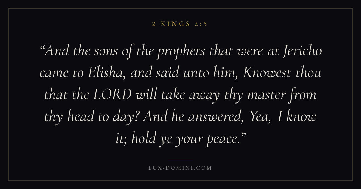 And the sons of the prophets that were at Jericho came to Elisha, and said unto him, Knowest thou that the LORD will take away thy master from thy head to day? And he answered, Yea, I know it; hold ye your peace.