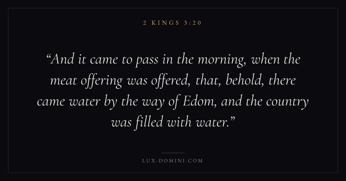 And it came to pass in the morning, when the meat offering was offered, that, behold, there came water by the way of Edom, and the country was filled with water.