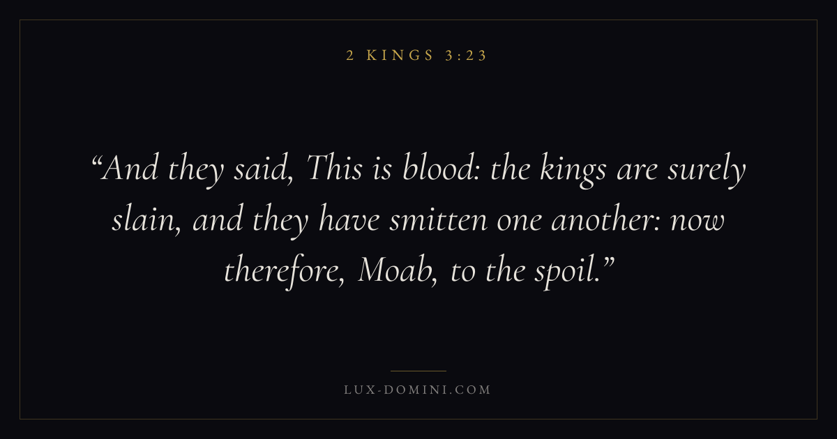 And they said, This is blood: the kings are surely slain, and they have smitten one another: now therefore, Moab, to the spoil.