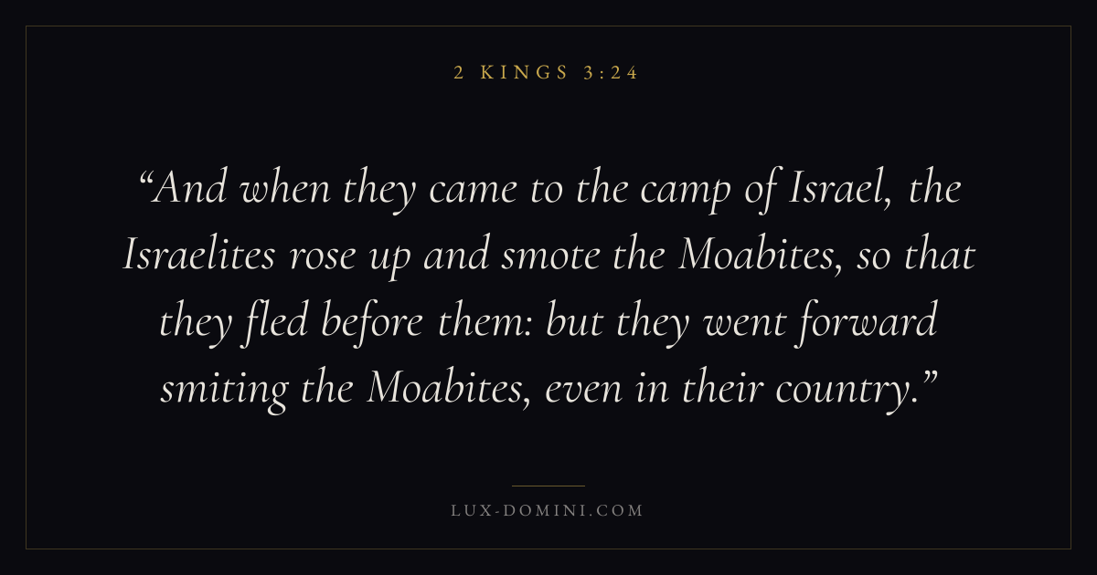And when they came to the camp of Israel, the Israelites rose up and smote the Moabites, so that they fled before them: but they went forward smiting the Moabites, even in their country.