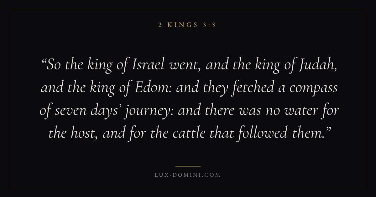 So the king of Israel went, and the king of Judah, and the king of Edom: and they fetched a compass of seven days’ journey: and there was no water for the host, and for the cattle that followed them.