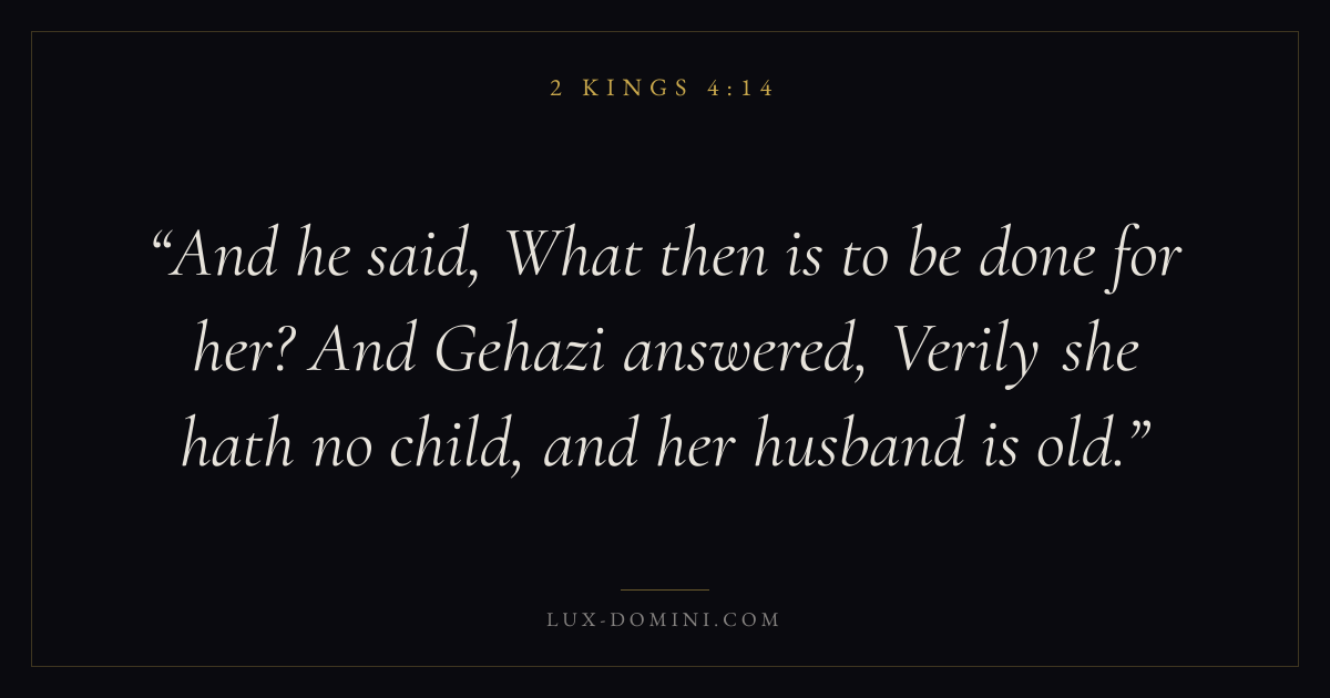 And he said, What then is to be done for her? And Gehazi answered, Verily she hath no child, and her husband is old.