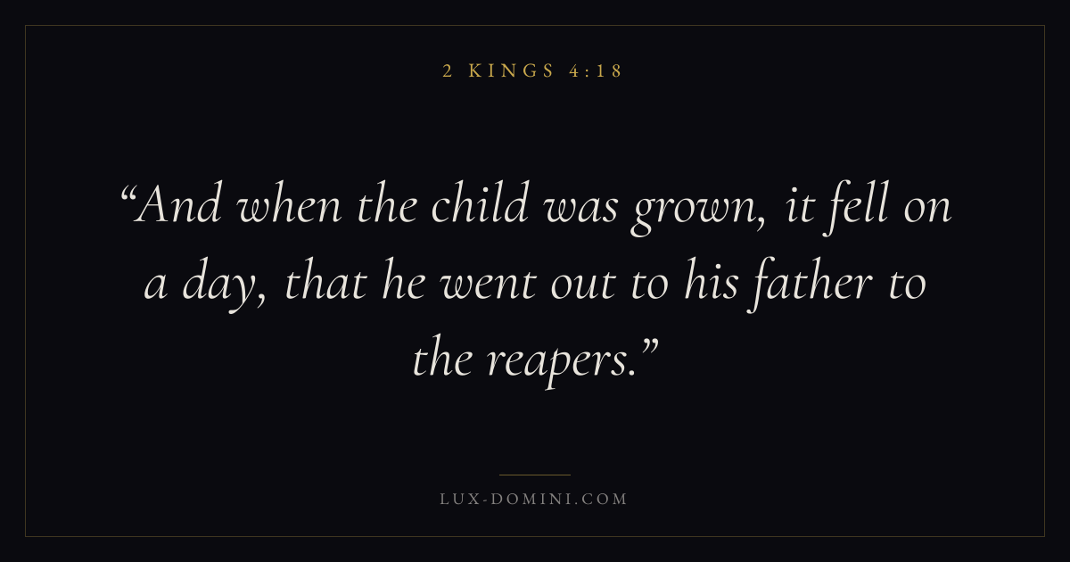 And when the child was grown, it fell on a day, that he went out to his father to the reapers.