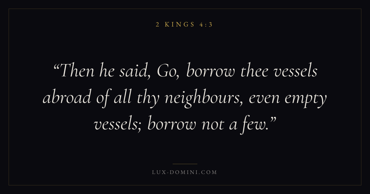 Then he said, Go, borrow thee vessels abroad of all thy neighbours, even empty vessels; borrow not a few.