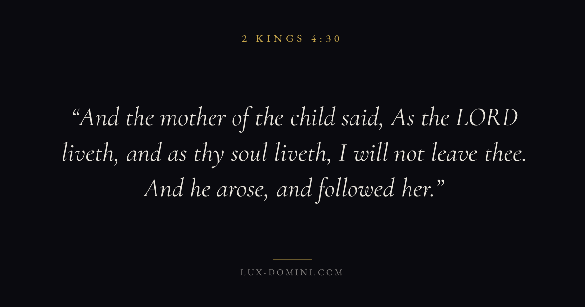 And the mother of the child said, As the LORD liveth, and as thy soul liveth, I will not leave thee. And he arose, and followed her.