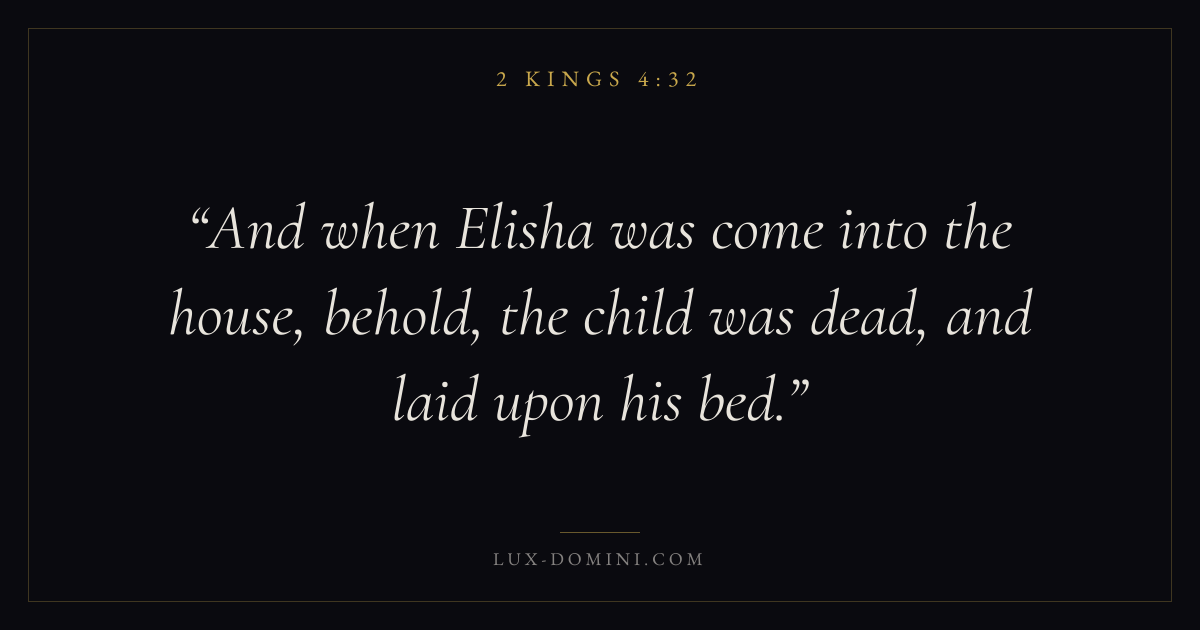 And when Elisha was come into the house, behold, the child was dead, and laid upon his bed.