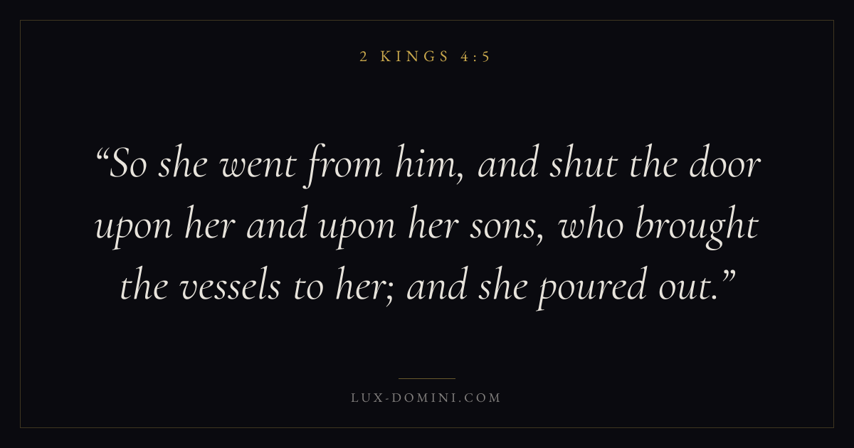So she went from him, and shut the door upon her and upon her sons, who brought the vessels to her; and she poured out.