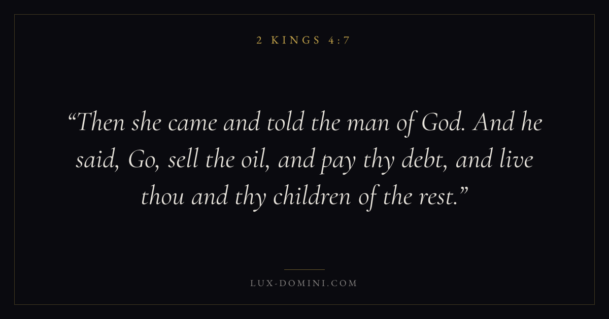 Then she came and told the man of God. And he said, Go, sell the oil, and pay thy debt, and live thou and thy children of the rest.