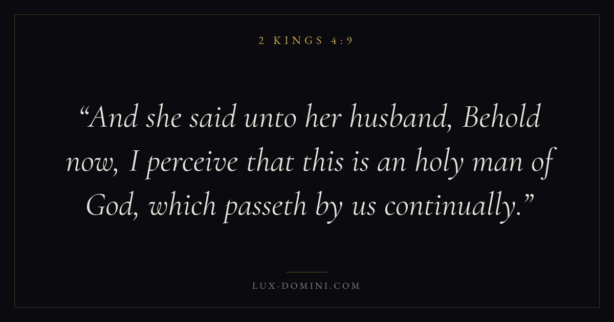 And she said unto her husband, Behold now, I perceive that this is an holy man of God, which passeth by us continually.