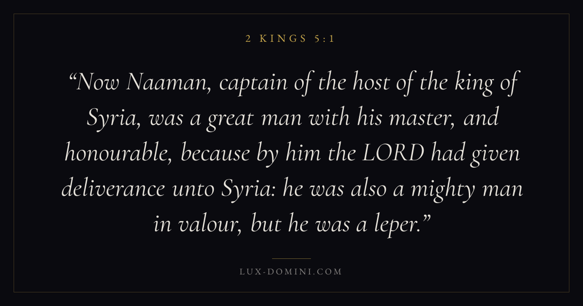 Now Naaman, captain of the host of the king of Syria, was a great man with his master, and honourable, because by him the LORD had given deliverance unto Syria: he was also a mighty man in valour, but he was a leper.