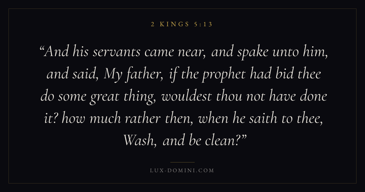 And his servants came near, and spake unto him, and said, My father, if the prophet had bid thee do some great thing, wouldest thou not have done it? how much rather then, when he saith to thee, Wash, and be clean?