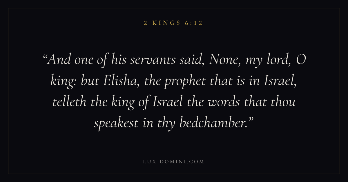 And one of his servants said, None, my lord, O king: but Elisha, the prophet that is in Israel, telleth the king of Israel the words that thou speakest in thy bedchamber.