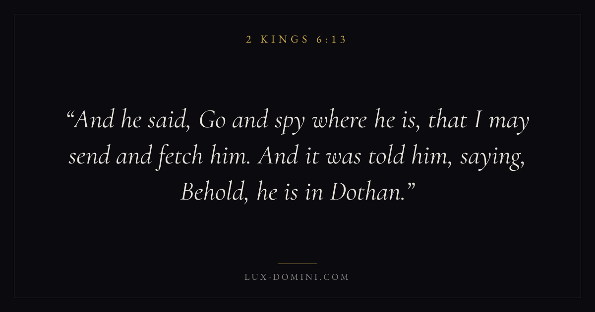 And he said, Go and spy where he is, that I may send and fetch him. And it was told him, saying, Behold, he is in Dothan.