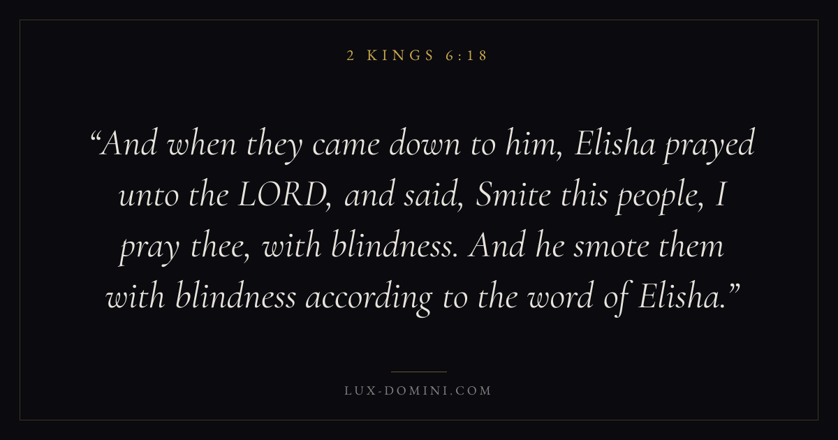 And when they came down to him, Elisha prayed unto the LORD, and said, Smite this people, I pray thee, with blindness. And he smote them with blindness according to the word of Elisha.