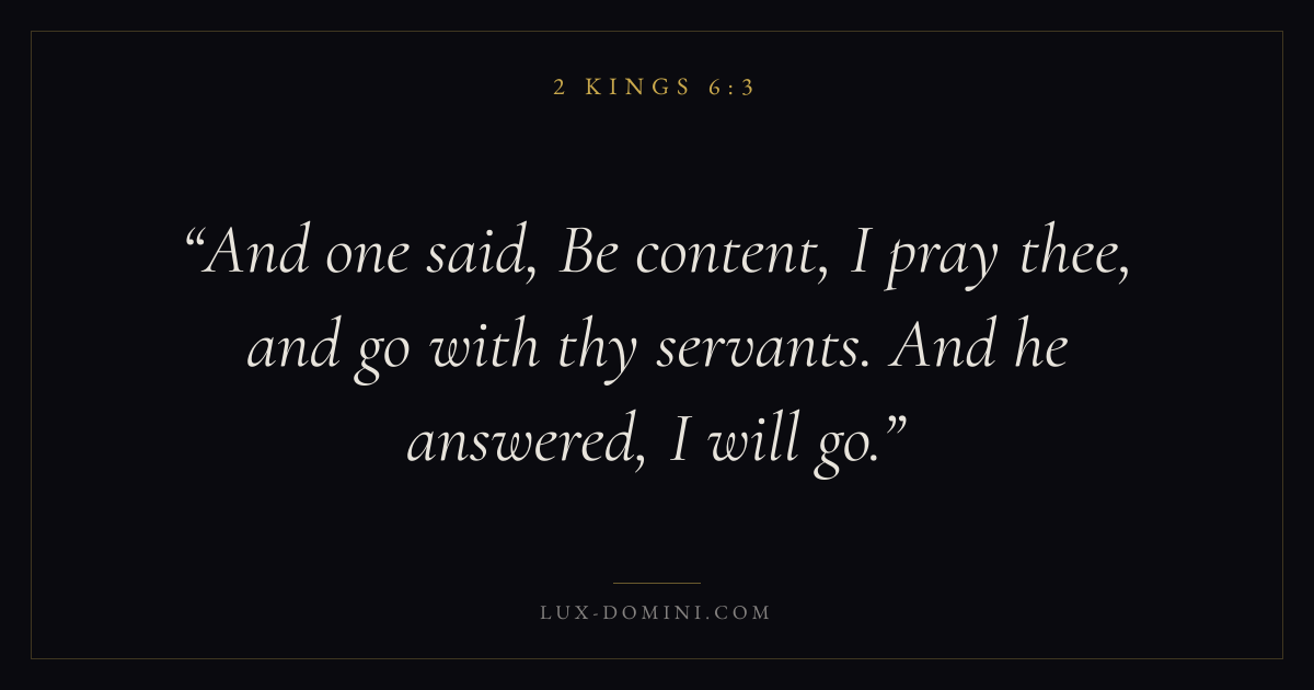 And one said, Be content, I pray thee, and go with thy servants. And he answered, I will go.