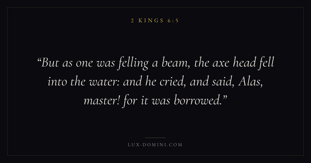 But as one was felling a beam, the axe head fell into the water: and he cried, and said, Alas, master! for it was borrowed.