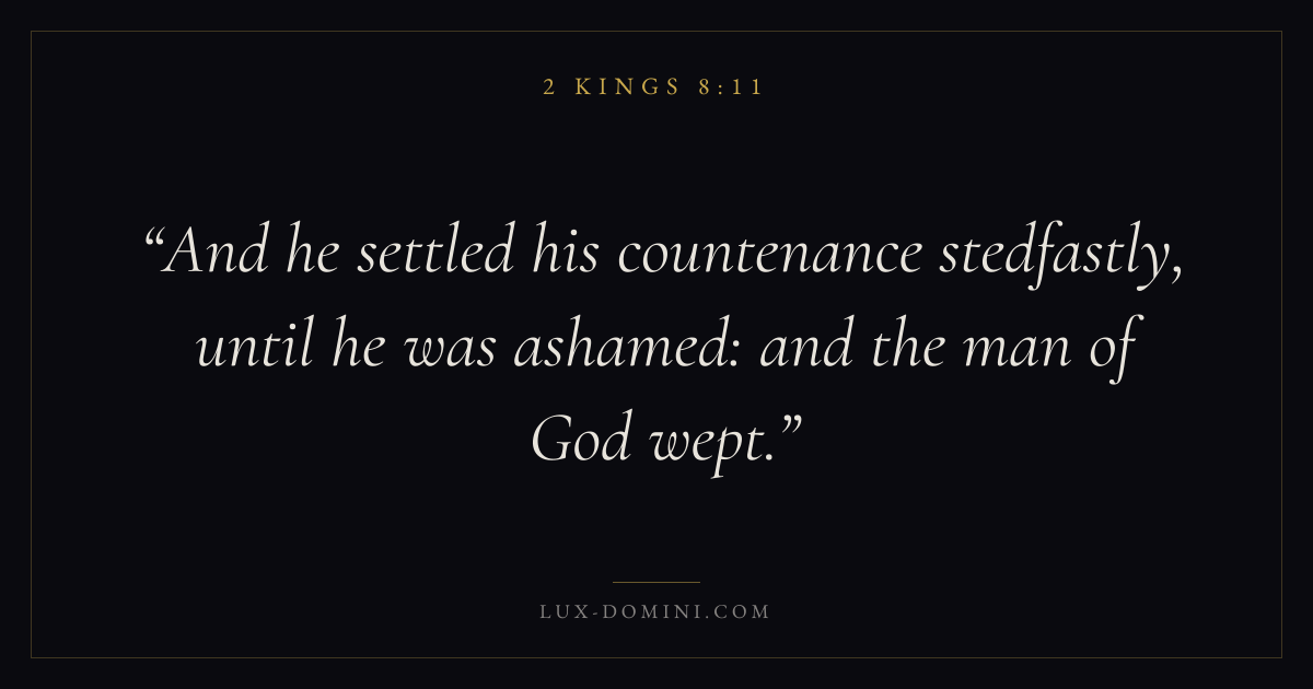 And he settled his countenance stedfastly, until he was ashamed: and the man of God wept.
