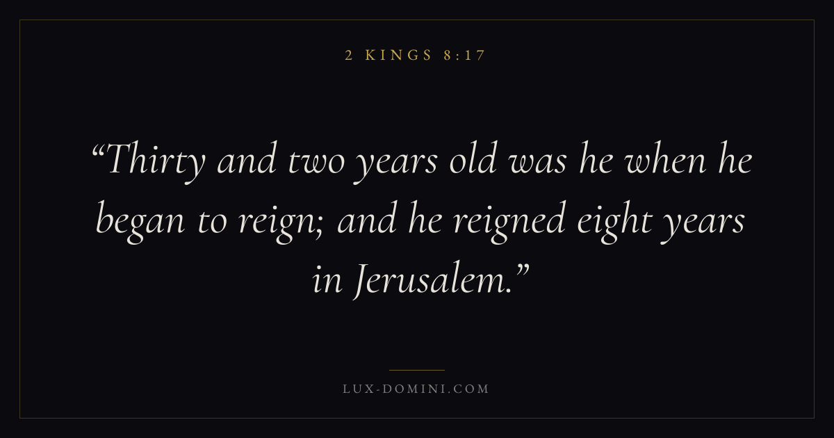 Thirty and two years old was he when he began to reign; and he reigned eight years in Jerusalem.