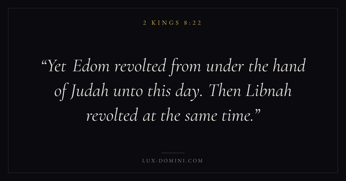 Yet Edom revolted from under the hand of Judah unto this day. Then Libnah revolted at the same time.
