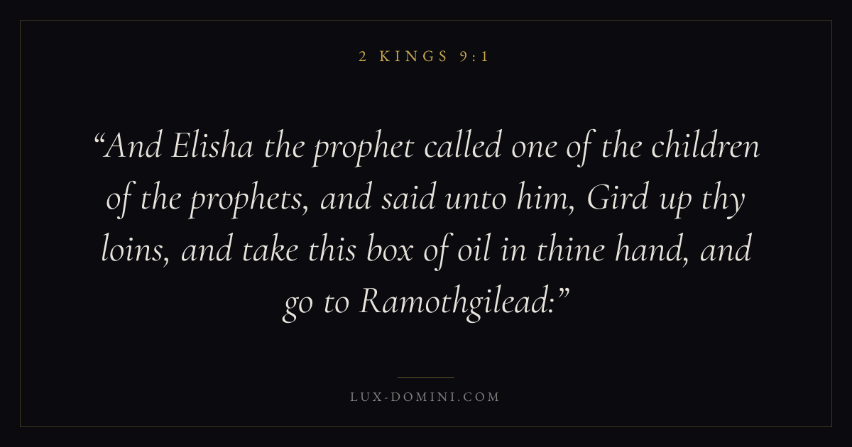 And Elisha the prophet called one of the children of the prophets, and said unto him, Gird up thy loins, and take this box of oil in thine hand, and go to Ramothgilead:
