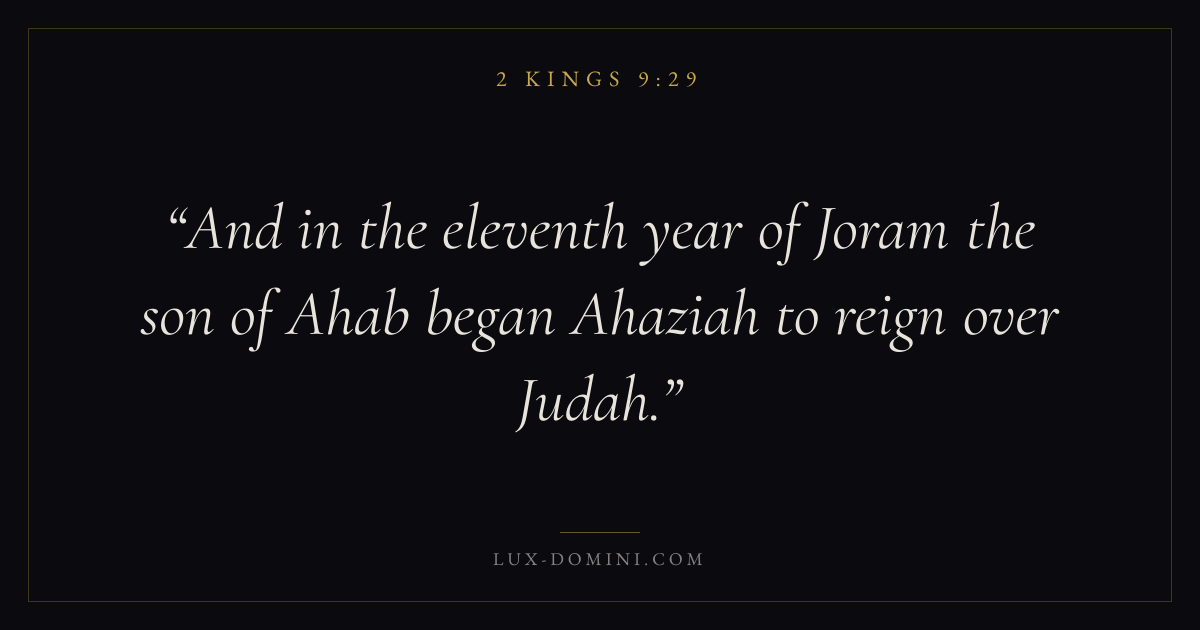 And in the eleventh year of Joram the son of Ahab began Ahaziah to reign over Judah.