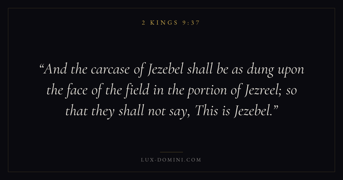 And the carcase of Jezebel shall be as dung upon the face of the field in the portion of Jezreel; so that they shall not say, This is Jezebel.