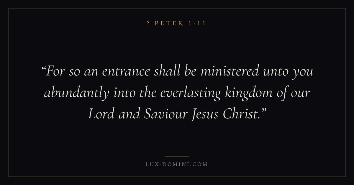 For so an entrance shall be ministered unto you abundantly into the everlasting kingdom of our Lord and Saviour Jesus Christ.