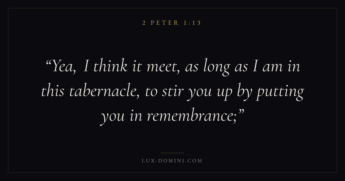 Yea, I think it meet, as long as I am in this tabernacle, to stir you up by putting you in remembrance;