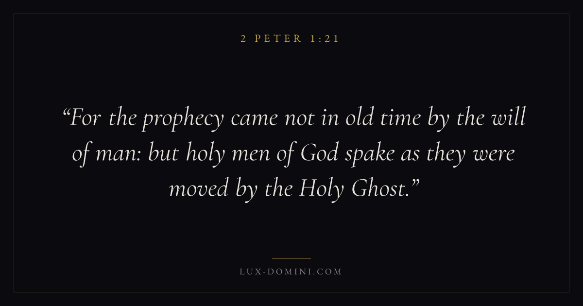 For the prophecy came not in old time by the will of man: but holy men of God spake as they were moved by the Holy Ghost.