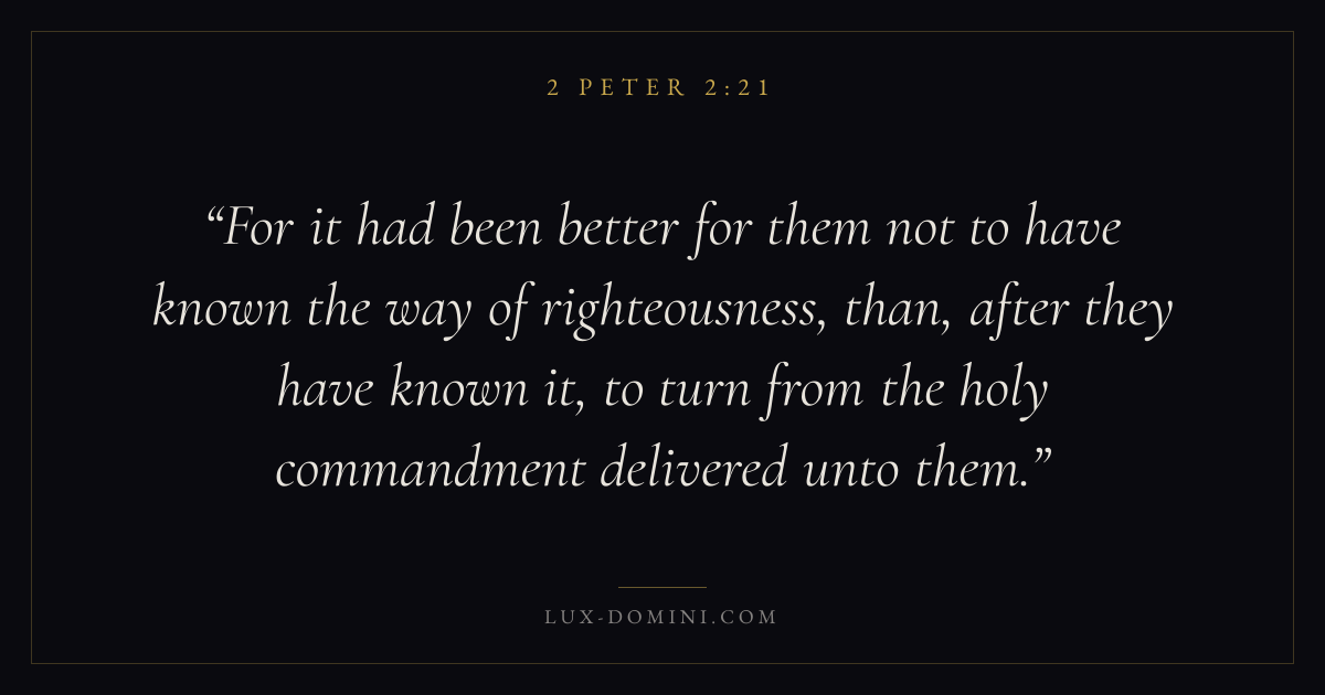 For it had been better for them not to have known the way of righteousness, than, after they have known it, to turn from the holy commandment delivered unto them.
