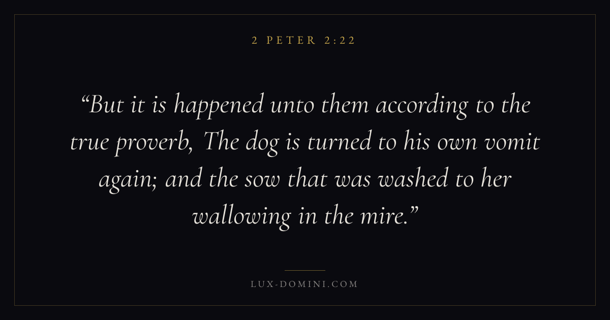 But it is happened unto them according to the true proverb, The dog is turned to his own vomit again; and the sow that was washed to her wallowing in the mire.