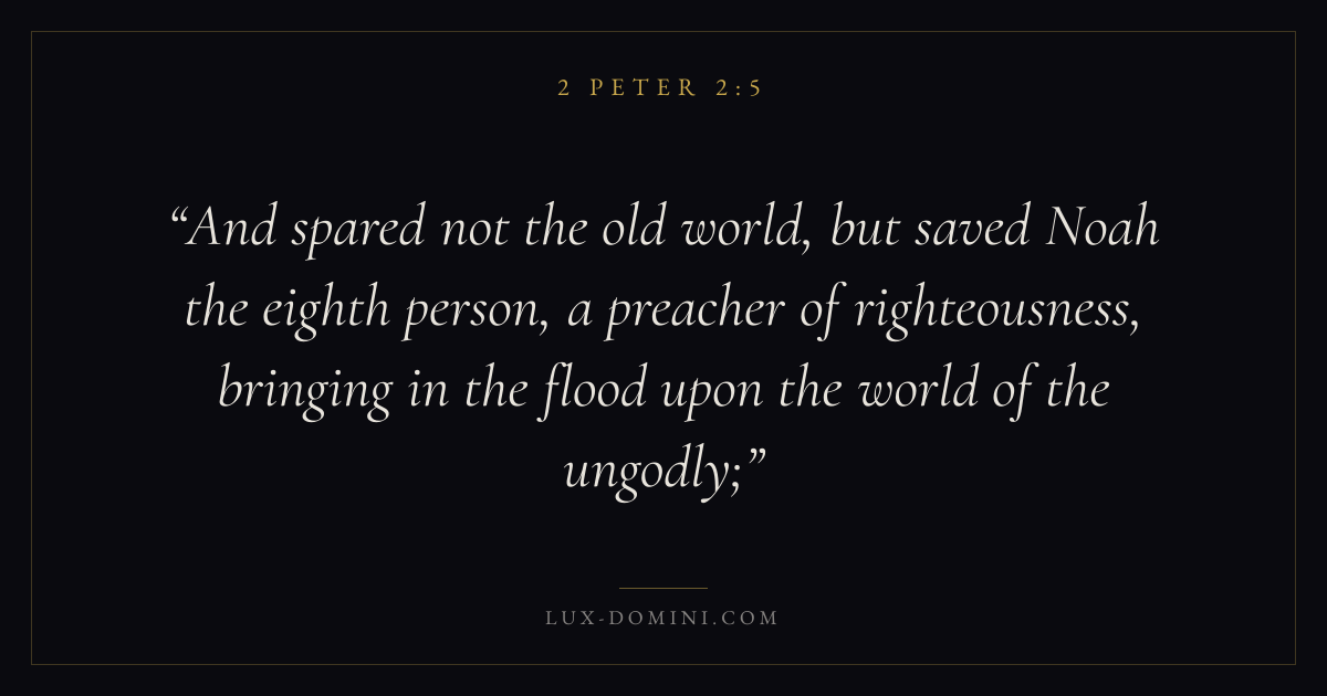 And spared not the old world, but saved Noah the eighth person, a preacher of righteousness, bringing in the flood upon the world of the ungodly;