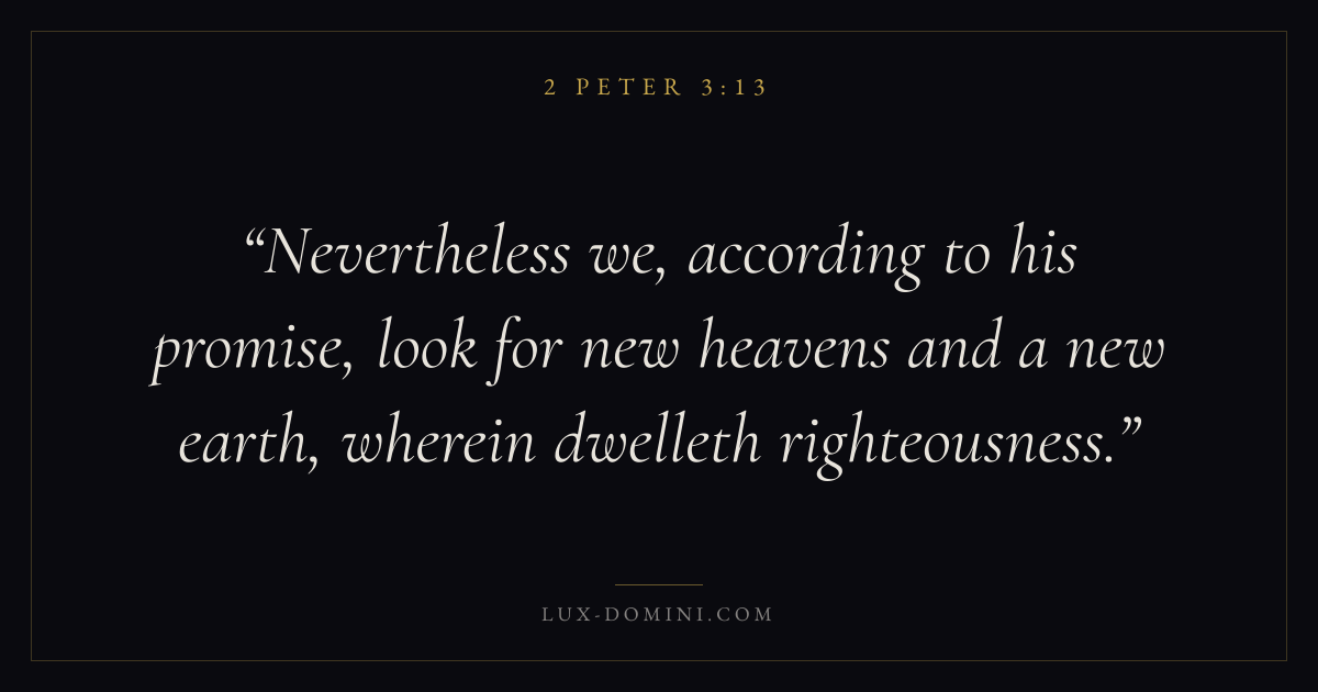 Nevertheless we, according to his promise, look for new heavens and a new earth, wherein dwelleth righteousness.