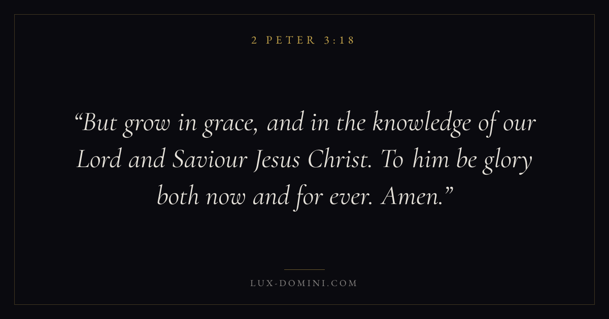 But grow in grace, and in the knowledge of our Lord and Saviour Jesus Christ. To him be glory both now and for ever. Amen.
