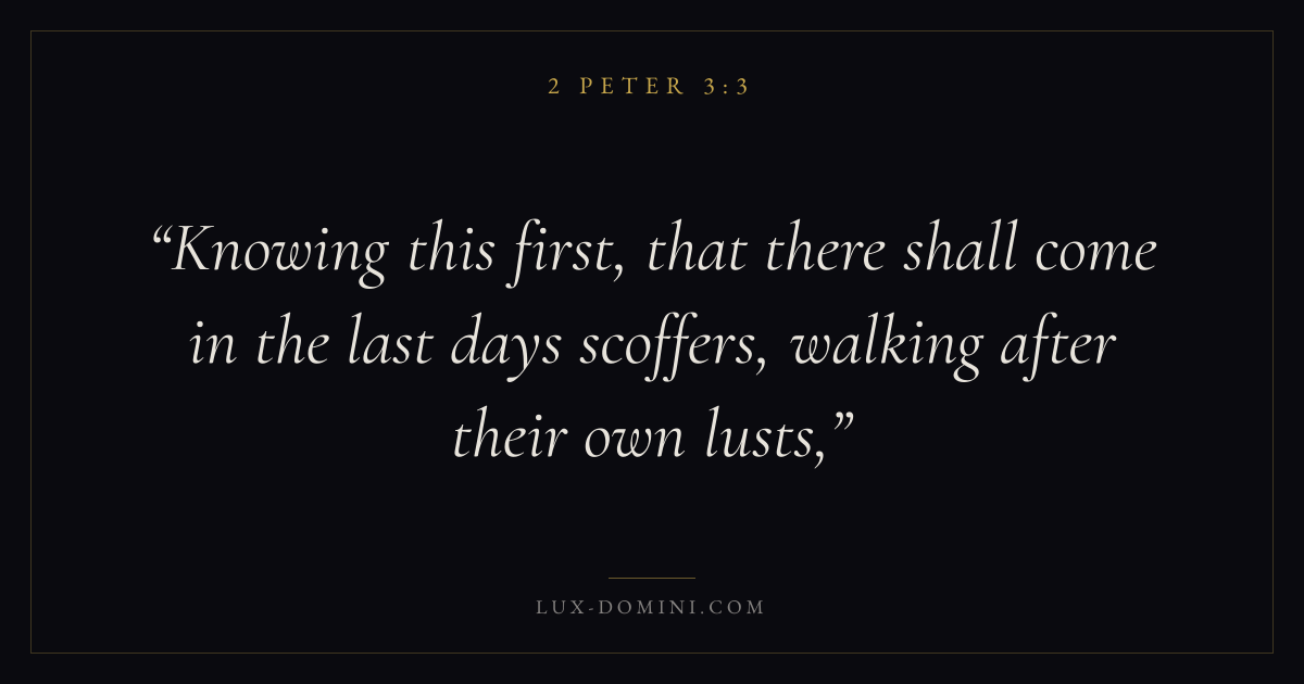 Knowing this first, that there shall come in the last days scoffers, walking after their own lusts,